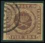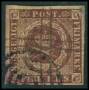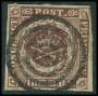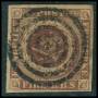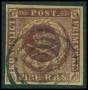 1851. 4 RBS Ferslew pl. II-10 dobbeltannulleret med blækkryds og stumt stp.
