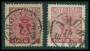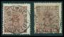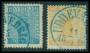 1858. 12 og 24 øre begge med blå stempler.