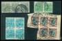1921. 50 øre vinrød/sort i 12-blok inkl. variant i pos. 32: Hak i R.