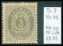 1875. 3 øre ultramarin/grå tryk 7 pos. 33 med ovalfejl.