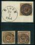 NUMMERSTEMPLER. 48: NYKØBING I JYLLAND. Indstikskort med 3 stemplede kvadrater.