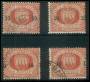 1892. 10 cmi./10/20 c. rød. 3 stk. med forskudt overtryk.