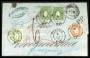 SACHSEN. 1863. Våbentype, 5 Neu-Groschen, gråblå og 1 Neu-Groschen, rosa samt 3 Pfennig, grøn (grøn). Brev sendt fra PLAUEN 2.APR.66 til Civitavecchia i Italien. Masser af påtegninger og forskellige s...