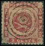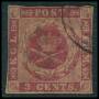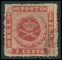 1856. 3 c. mørkkarmin med brun gummi. AFA 2800,-