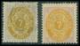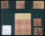 1873+1907. 1 c. tofarvet og 10 bit rød i antal.