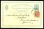 1896. Tofarvet, 1 Cent, 10. tryk, grøn/rødlig lilla. Opfrankeret på 2 Cents helsagskonvolut. Sendt som tryksag fra ST.THOMAS 19.4.1900 via Le Havre til Dresden i Tyskland. Påtegnet "Printed Matter onl...