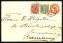 1873. Tofarvet, 3 Cents, 7. Tryk, Position 52 og 4 Cents, 2. Tryk. Opfrankeret på helsagskonvolut, 3 Cents, rød. Sendt fra ST.THOMAS 1.12.1891 til Hamborg i Tyskland. Konvoluten er lukket med Tofarvet...