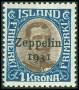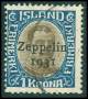 1930. 1 kr. blå/brun Zeppelin. AFA 850,-