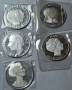 Danmarks Royale 5- og 10 kroner i sølv, 1960, 1964, 1967, 1968, 1972 og 1986