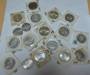 En kasse med diverse, bl.a. Siegs røde møntalbum med 10 øre, 25 øre og 10 kroner, mønt- og banksæt 1974-1983 samt 1990 og 1992, stauningkrone, lidt småmønt samt lidt medaljer. vægt ca. 2,5 kg