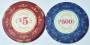 USA. Casino Chips (Jetoner), Casino Royale (James Bond). 5 og 500 Dollar. Kunstmateriale 40 mm.