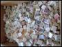 Lomme med diverse mærker med sammenklæbet papirbane.