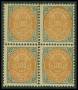 1895. 100 øre grå/gul i 4-blok med omv. rm. AFA (løse) 7.200,-