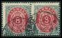 1902. 8 øre grå/rød vm. III i par, højre mærke med rift i højre side. Attest Jørgensen.