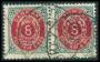 1902. 8 øre grå/rød vm. III i par med bureau stp. Struer-Thisted. Attest Jørgensen.