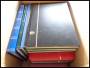 Kasse med 11 bøger, diverse materiale.