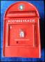 POSTKASSE. Postbrevkasse med grønlandske klistermærker rød i metal inkl. Nøgle.