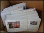 Kasse med 2 tykke indstiksbøger med meget mellemgodt materiale samt æske med Røde Kors hæfter.