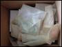 Kasse med samling i indstiksbog og ca 30.000 mærker i pergamynposer til sortering.