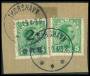 1919. 2/5 øre grøn og 5 øre grøn på klip stp. Thorshavn 20.1.19. Attest Kaiser.