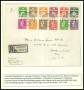 1940-41. Anbefalet brev med provisorier, 50/5 og 60/6 øre fra 2. oplag stemplet 12-5-41 "THORSHAVN" (oplag 200)/ Samt 20/1 øre med højt overtryk på Rejselist stemplet 4-6-41 med Klipfiskstempel (sjæld...