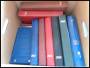 TILBEHØR. Storkasse med diverse tomme bøger.