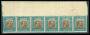 1907. 1 kr. blå/brun i 6-stribe, 6 mærke med kongerne i regnvejr. AFA 3.000,-+