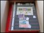 Kasse med diverse samlinger i bøger inkl. miniark mv.