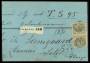 1870. 16 sk. oliven tryk 4 pos. 38-39 i par linietakket på stor del af sdressebrev til Norge, del af frankering mangler. Attest Jørgensen.