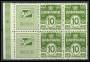 REKLAME. 10 øre grøn Buick i 6-blok øverste mærke i midten med gummidefekt. Attest Jørgensen. Pragt.