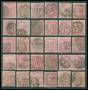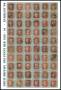 1858-64. 1 d. rød pl. 148 i komplet pladning af alle bogstaver (240) på 4 sider.