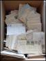 Flyttekasse med cirka 899 bundter og 4 æsker med løsmærker cirka 2,5 kg.