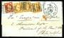1852-53. 1 fr. karmin Napoleon med let afrundet hjørne og 10 c. olivenbrun Repub.France (par med svag fold i nord og enkeltmærke minus nv-hjørne i alt 1,30 fr. frankering på brev fra Paris til Philade...