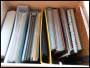 Storkasse med 12 bøger/album med bl.a. Australien lagerbog og Europamærker m.m.