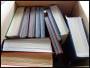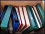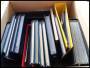 Flyttekasse med 16 indstiksbøger med alverdens motivmærker m.m.
