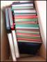 TILBEHØR. Flyttekasse fyldt med diverse album og indstikskort mv. Brugt.