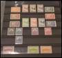 Samling på gamle albumsider, hvor flere mærker er fastklæbet og skal vaskes af.