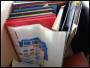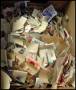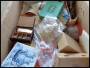 Flyttekasse med bla. mange postkort m.v.