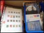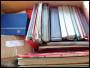 Flyttekasse med diverse lande, samlinger i ringbind nogle er mest fotokopier inkl. mærker så uoverskueligt.