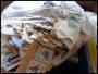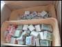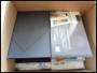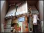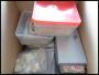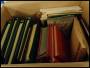 Oprydning i storkasse med diverse bundter, bøger og æsker mv.