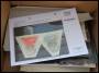 Flyttekasse med restsamlinger i 6 bøger fra tidligere auktioner fra engelske og franske kolonier, helark/rester fra europa og afrika samt erotiskekort mv.