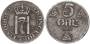 1 øre 1944, 2 øre 1943, 5 øre 1951 & 1 krone 1955