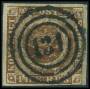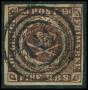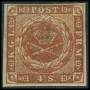 1853. 4 RBS mørk rødbrun med pragt nr. stp. 141. Attest LN.