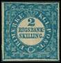 1852. 2 RBS blå Thiele pl. I-56 type 2: Spids fodstreg der kendes kun ganske få postfriske, Attest LN.