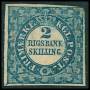 1852. 2 RBS blå Thiele pl. I-32 type 8. Attest Kaiser.