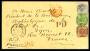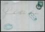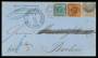 1863. 16 sk. gråviolet tætklippet, 4 sk. brun tætklippet og 8 sk. grøn på brev til Frankrig. Attest LN.