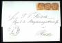 1851. 2 RBS blå Ferslew pl. II-62 type 4 (lille rift i n-marginal) på brevforside. Attest CAM.