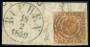 1854. 4 RBS nøddebrun pl. IV-36 og 4 RBS gulbrun pl. IV-2 på brev med nr. stp. 27 og 72, kun enkelte blandningfrankering kendes. Udstillingsobjekt. Attest CAM.