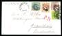 1858. 2 sk. blå, 16 sk. gråviolet og 4 sk. brun på brev fra Kjøbenhavn til Tyskland, adressaens navn er streget ud. Attest LN.
