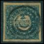 1854. 8 sk. grøn, lidt blyantskrift bagpå.
